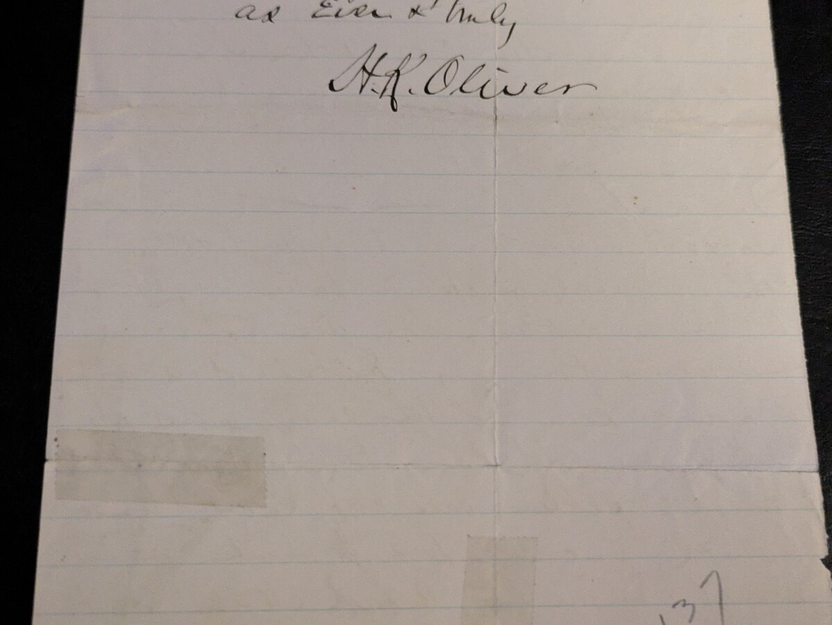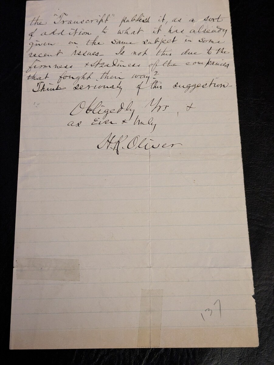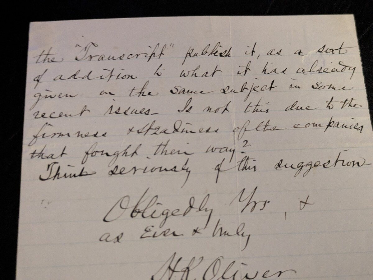 1883 Henry Oliver Salem MA Mayor Autograph Baltimore Riot Civil War Letter