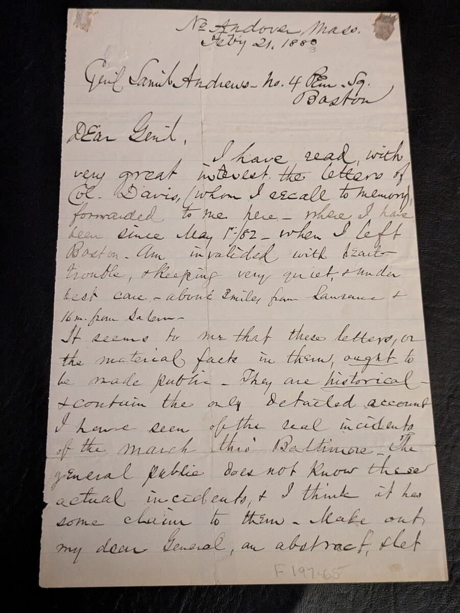 - 1883 Henry Oliver Salem MA Mayor Autograph Baltimore Riot Civil War Letter
