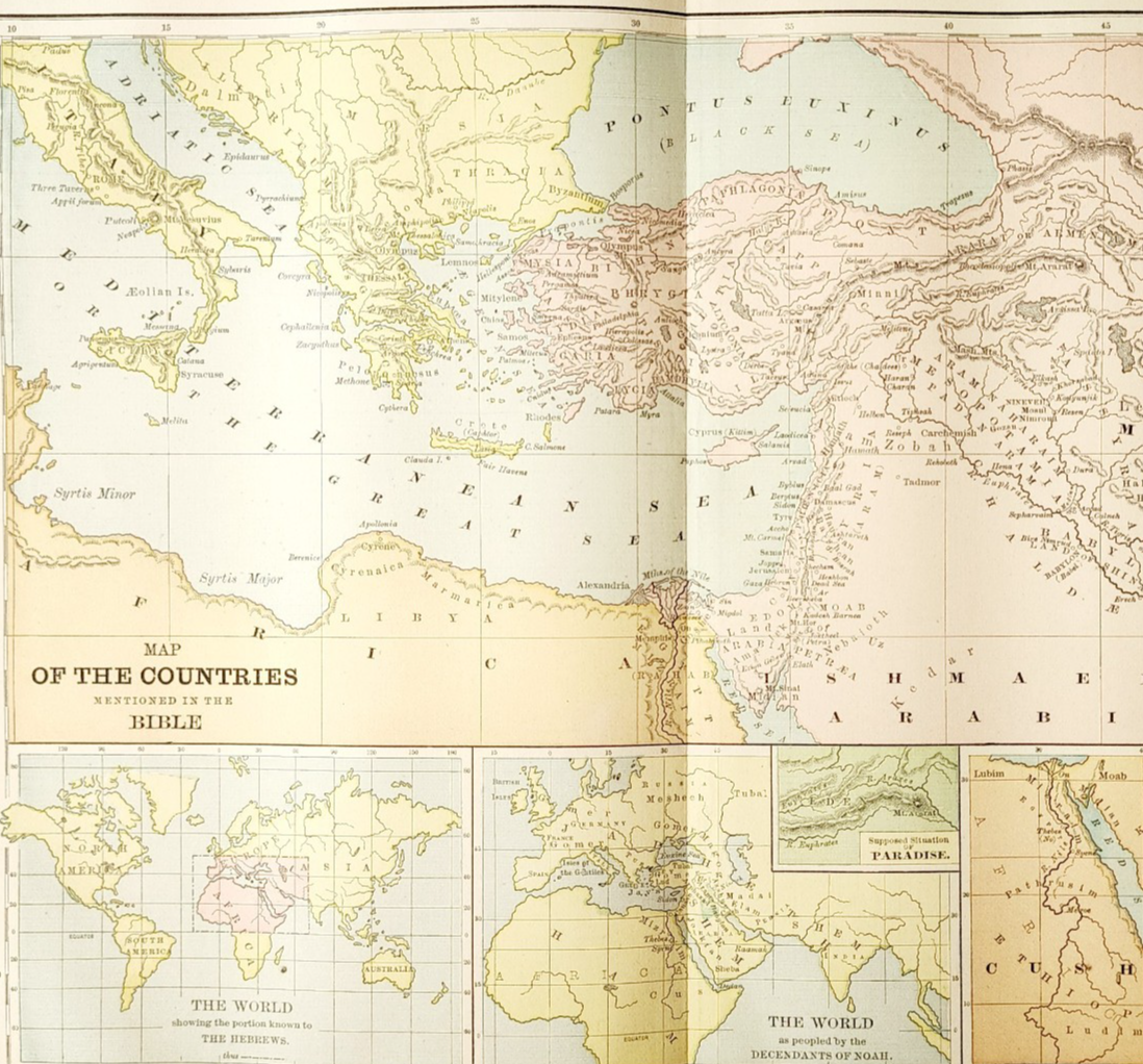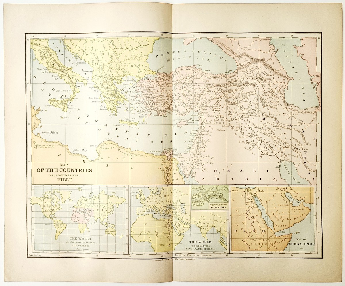 1883 Map Of The Countries Listed In The Bible Victorian Antique Bi-fold E90F3