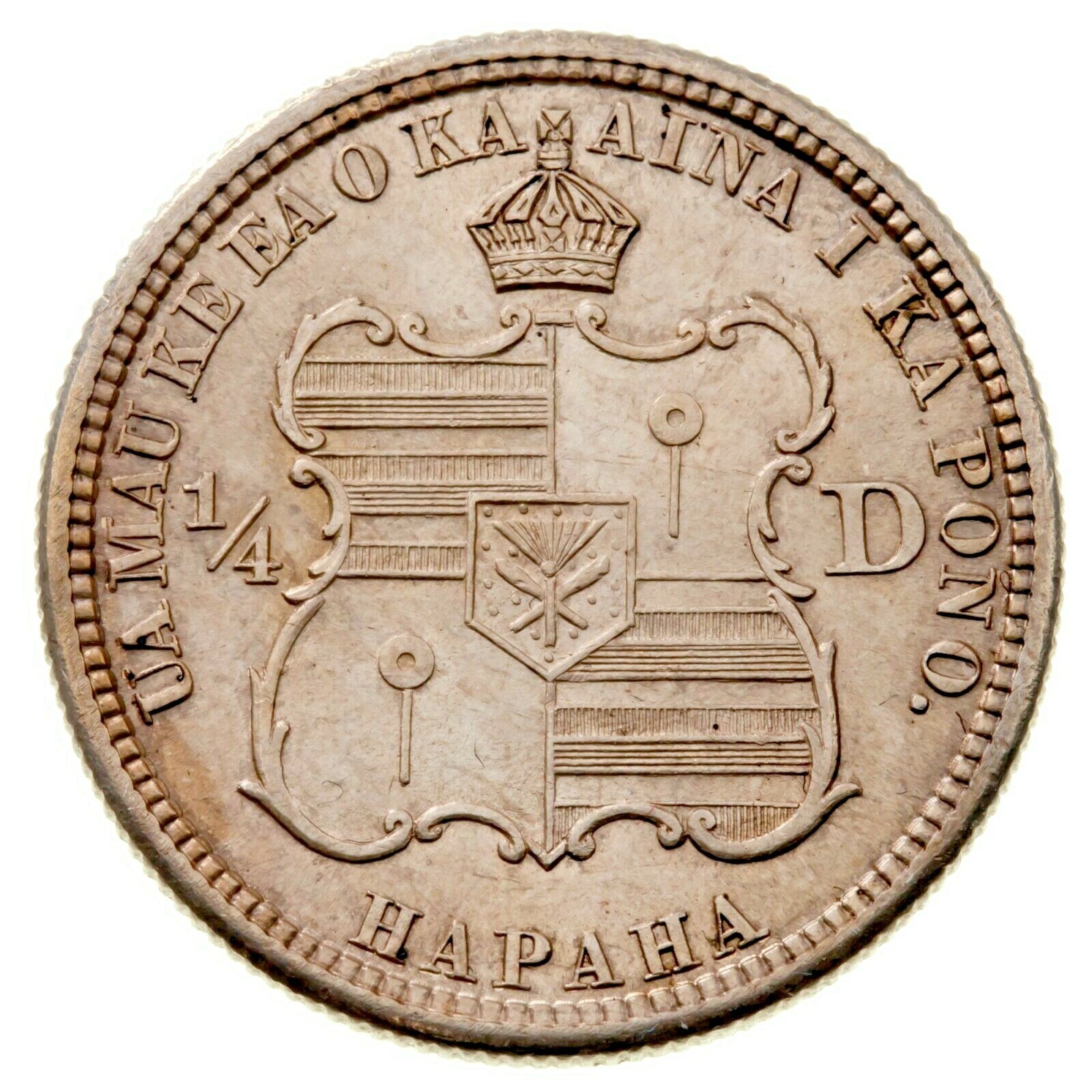 1883 Kingdom of Hawaii Silver 1/4 Dollar (UNC) Kalakaua 25c