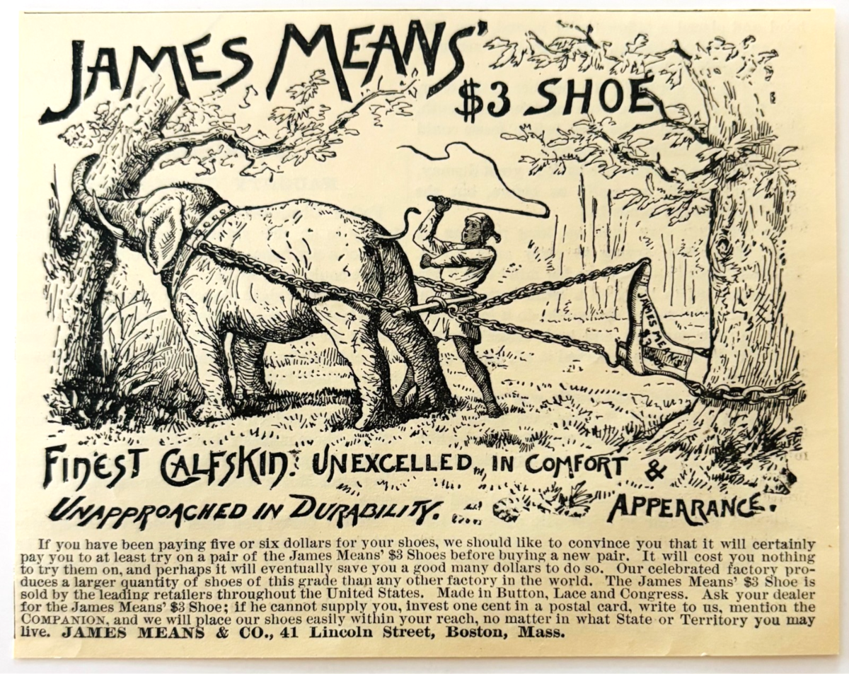 1886 James Means $3 Calfskin Shoe Advertisement Victorian Elephant DWKK27H