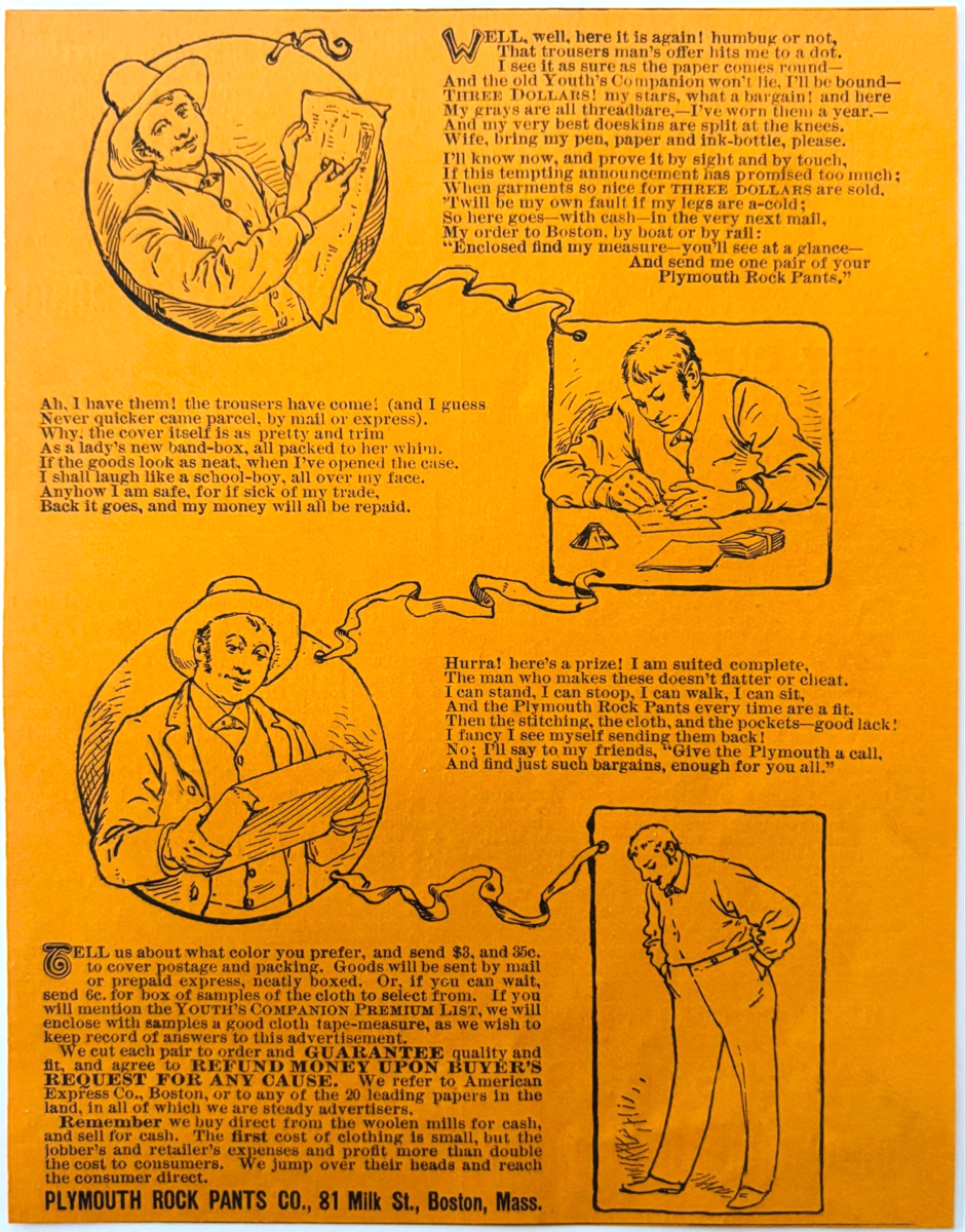 1886 Plymouth Rock Pants Orange Advertisement Victorian Fashion Clothes DWKK27D