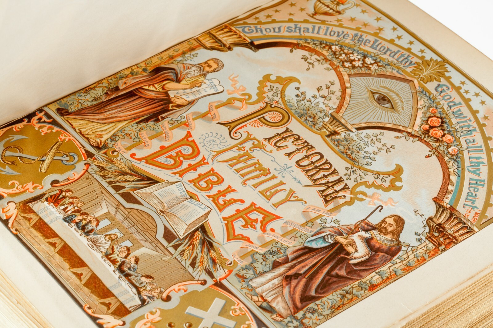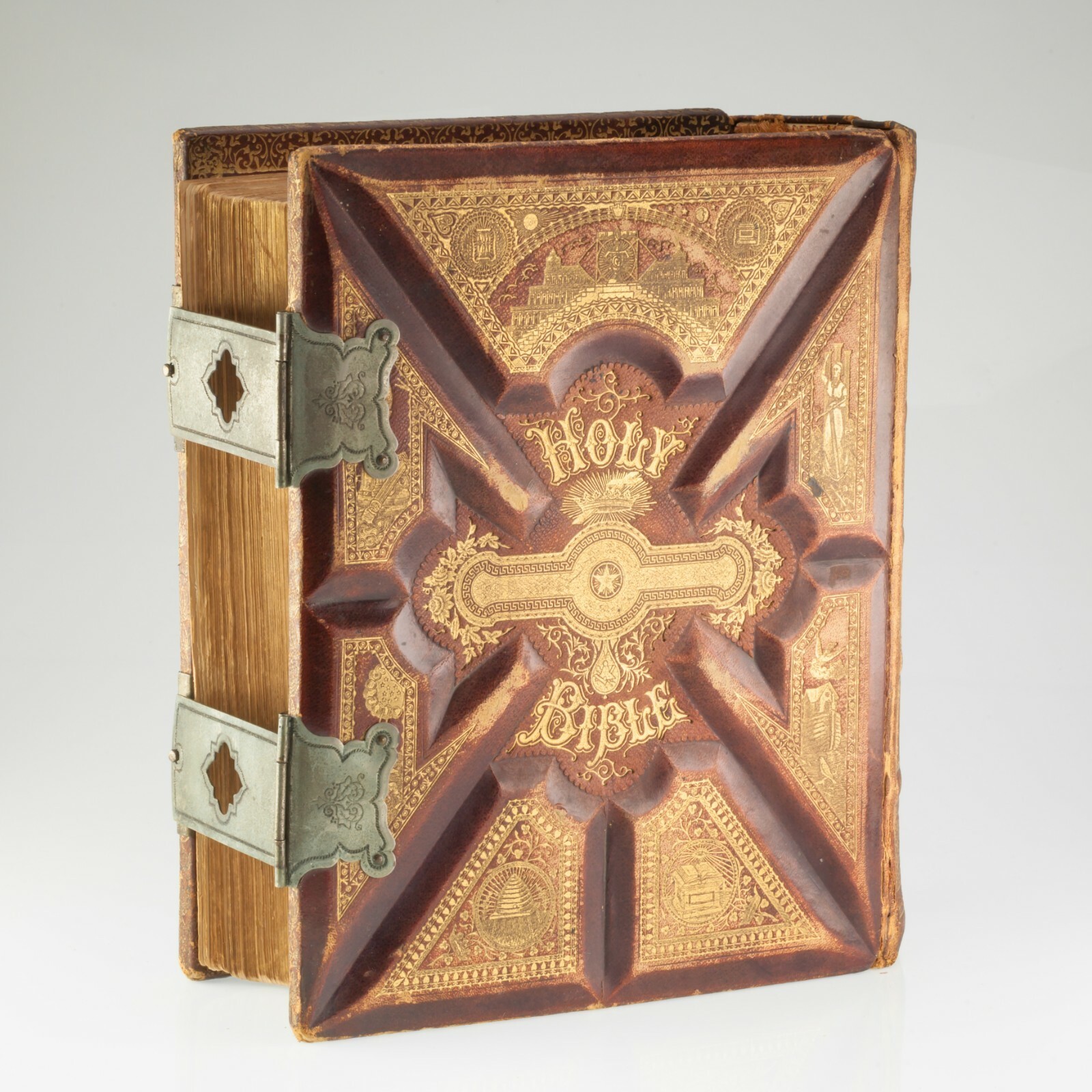 1890 PRONONNAGE CUIR Bible parallele lie avec des fermoirs Antique Livre