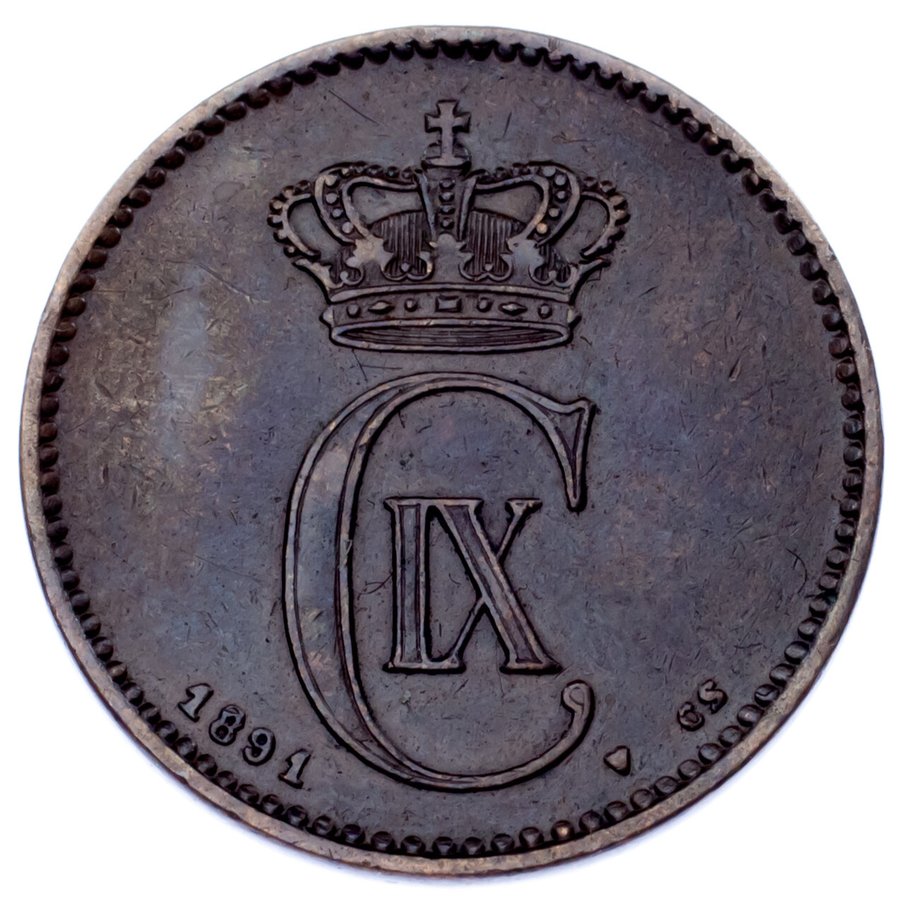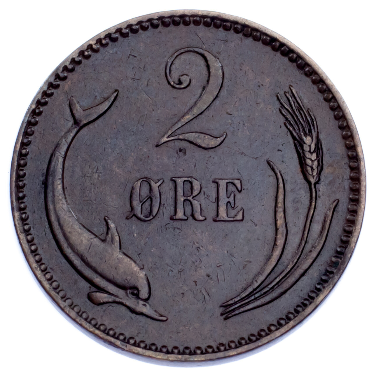 - 1891 Denmark 2 Ore Coin In AU, KM# 793.1