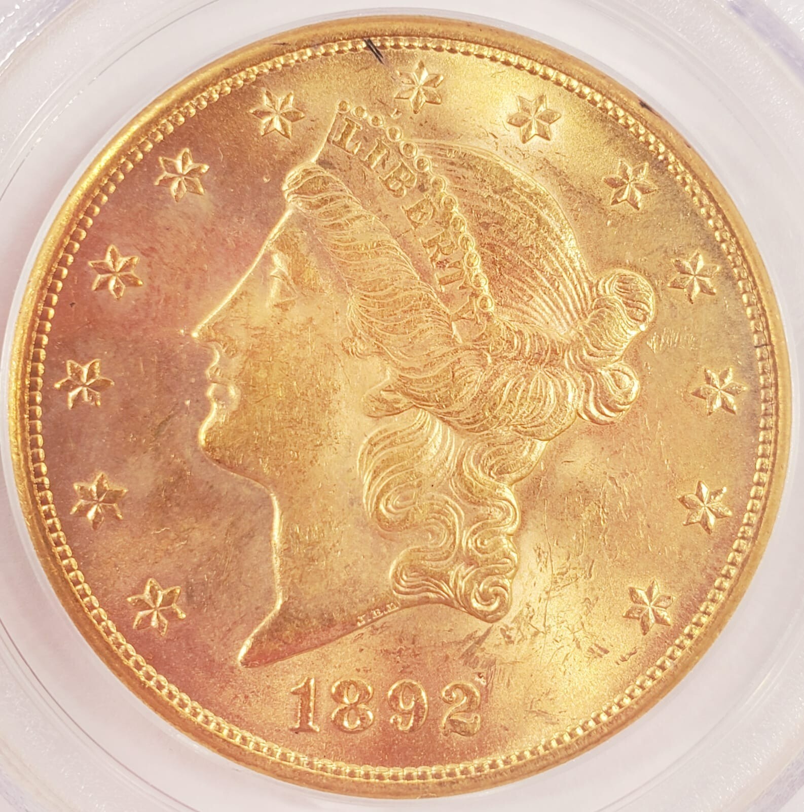 1892-S Gold Liberty Double Eagle Graded by PCGS as MS-63! Early US gold