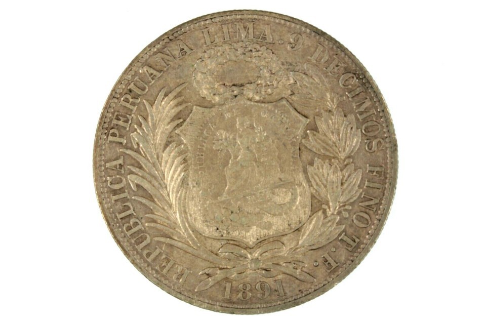 1891 Perou Un Sol avec un contre-stamp au Guatemala 1894 d'un 1/2 reel