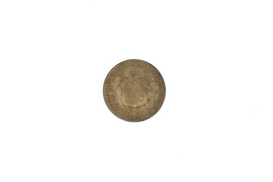 - 1894 Guatemala Peso 1/2 Genuine Counterstamped Peru Sol In Condition Km 224- ...