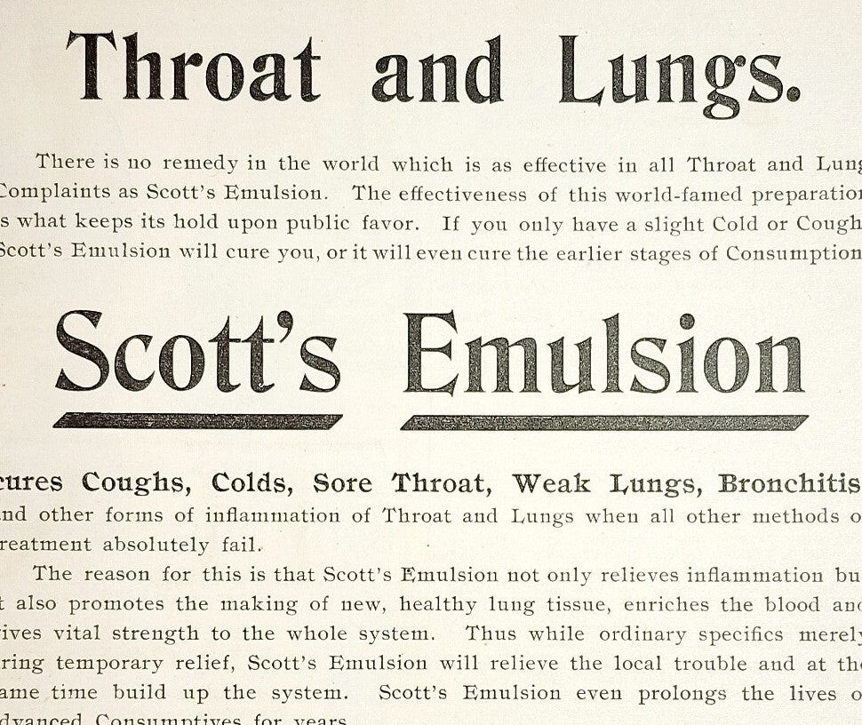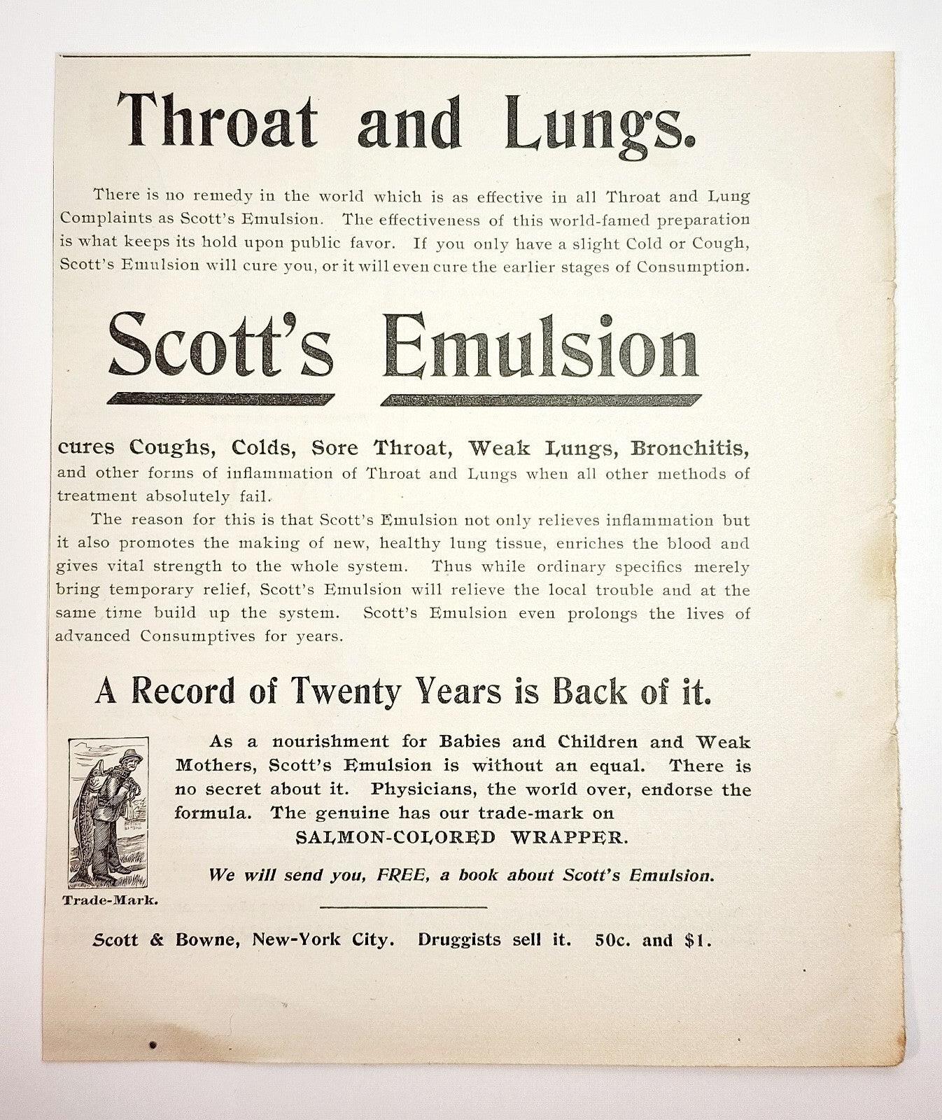 1894 Scott's Emulsion Quack Medicine Victorian Medical Advertisement NYC Salmon