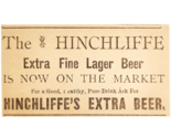 Primary image for 1895 Hinchliffe Fine Lager Beer Victorian Advertisement Brewery Alcohol F13K