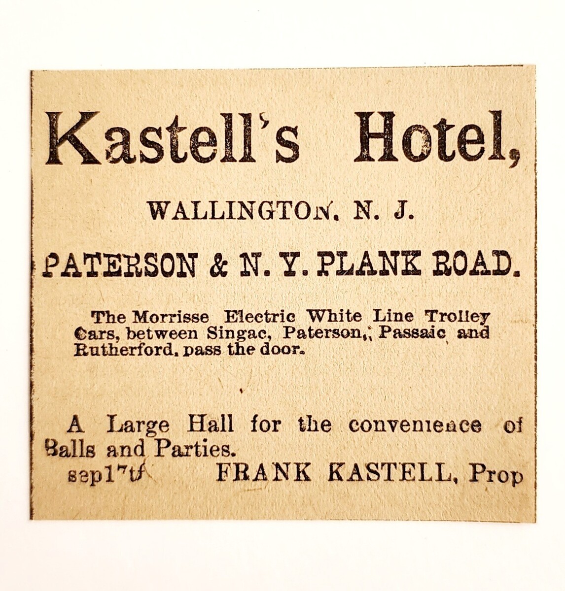1895 Kastell's Hotel Victorian Advertisement New Jersey Wallington F13M