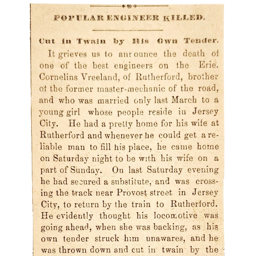 1895 Railroad Engineer Cut In Half By Train Article Passaic NJ Victorian F13K