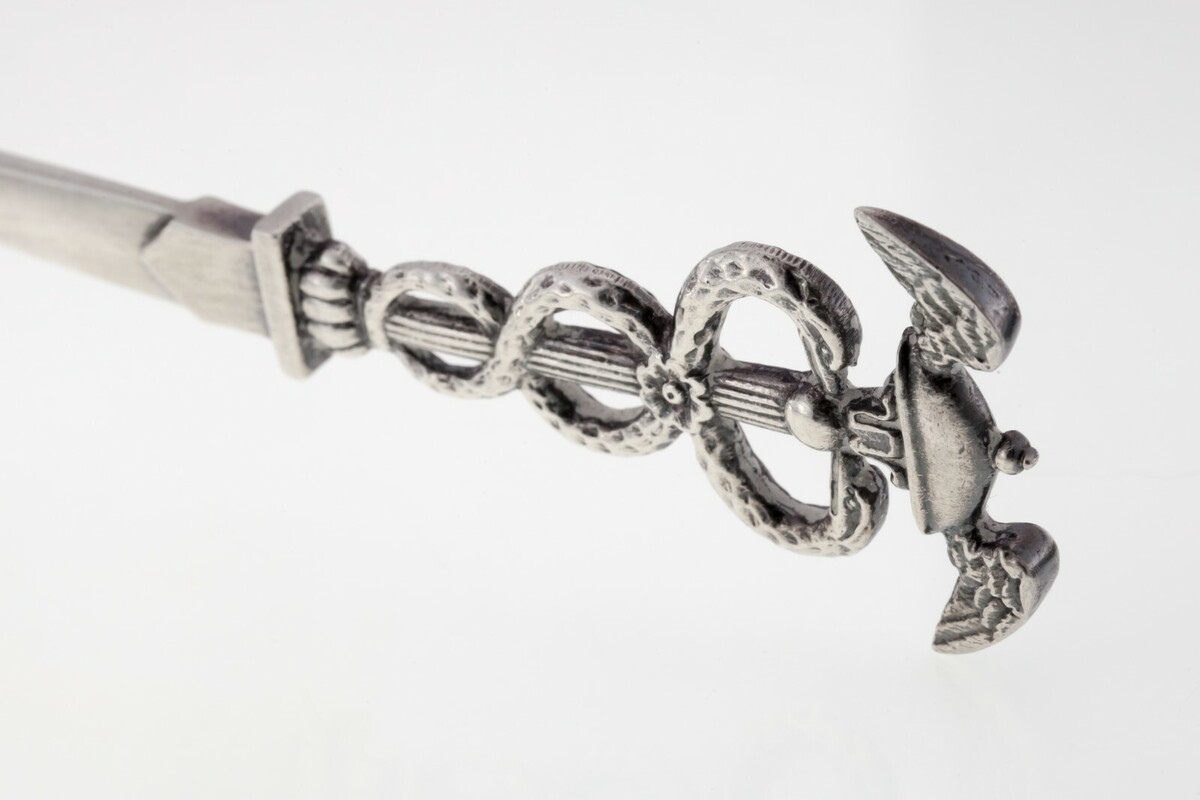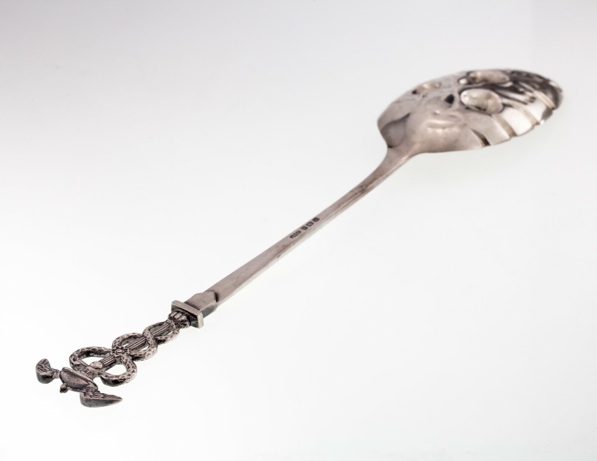 Features Fruit repousse spoon and nicely done Caduceus handle