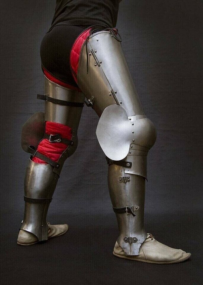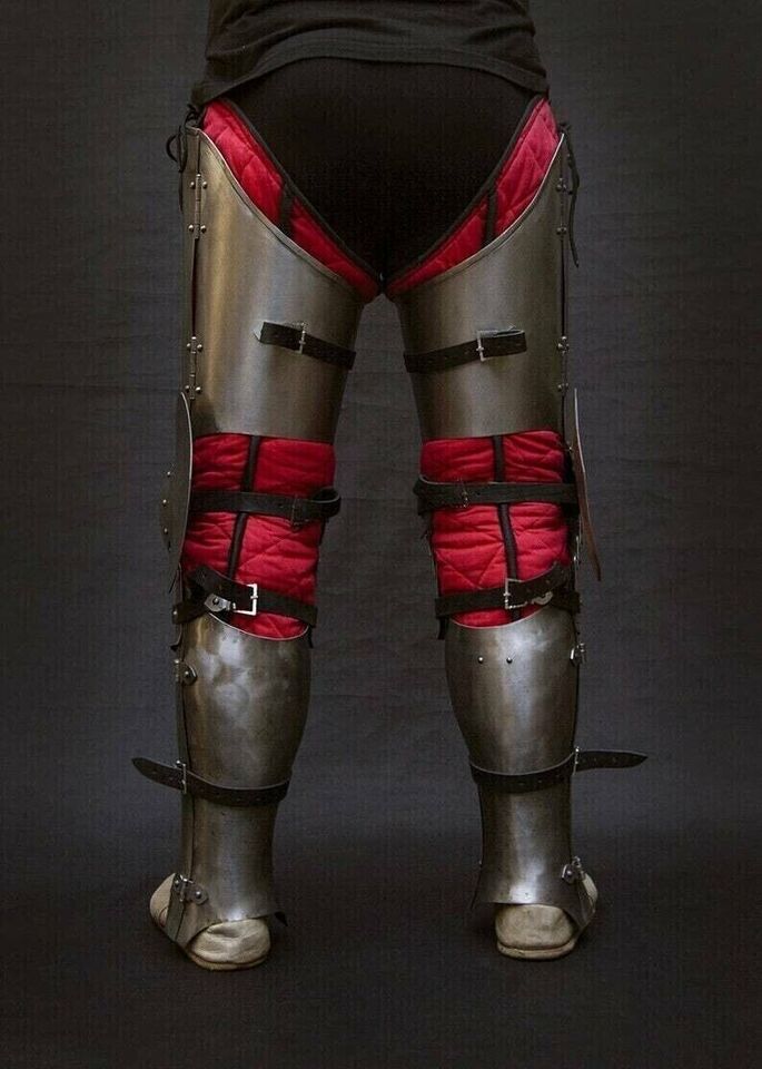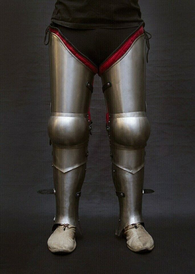 - 18GA Steel SCA LARP Medieval German Full Leg Armor With Greaves & Knee Cuisses