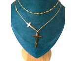 - 18K Gold Filled Three Cross Necklace Women’s Layered Pendant Chain 18"