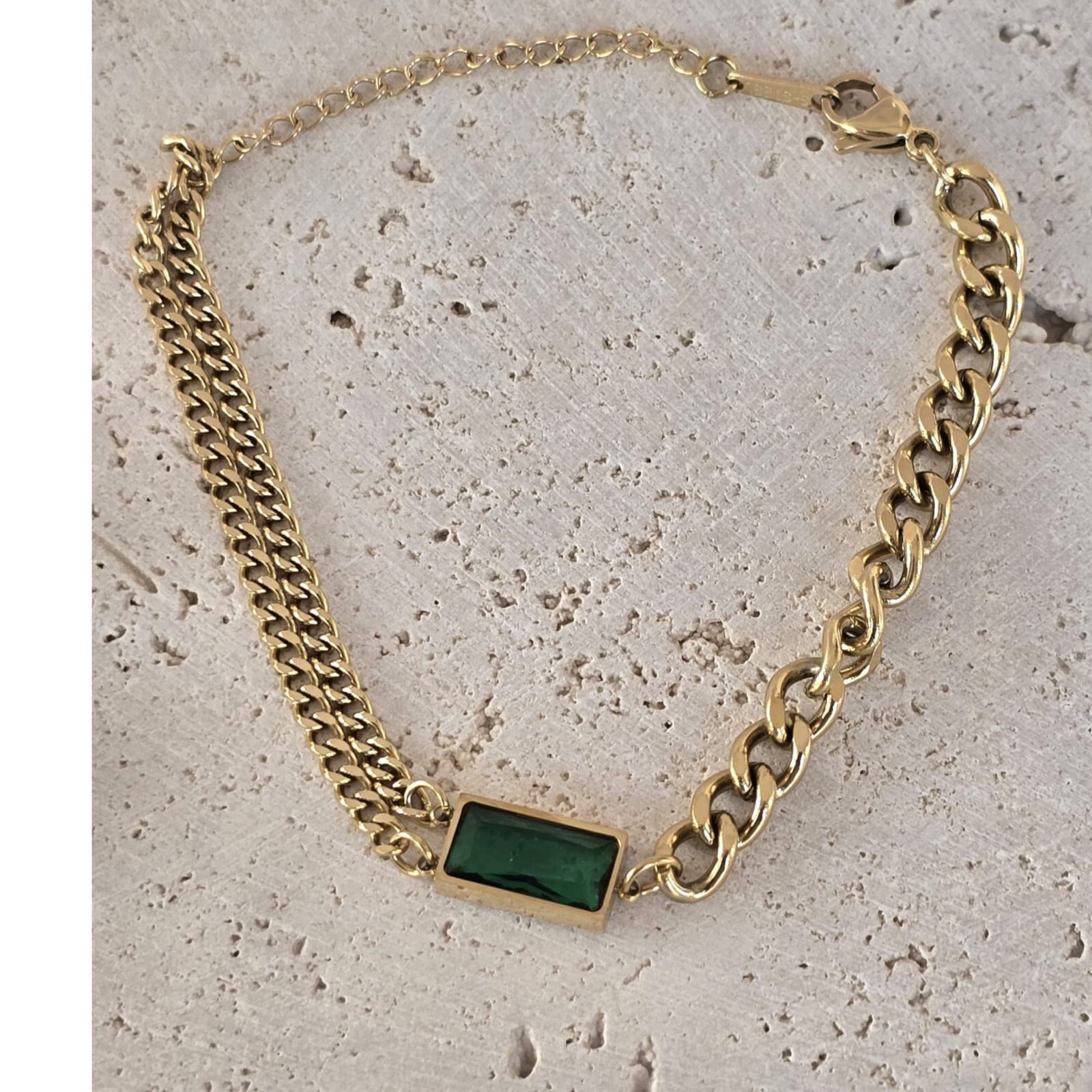 Bracelet: Coordinating gold-filled link chain with green zircon accents