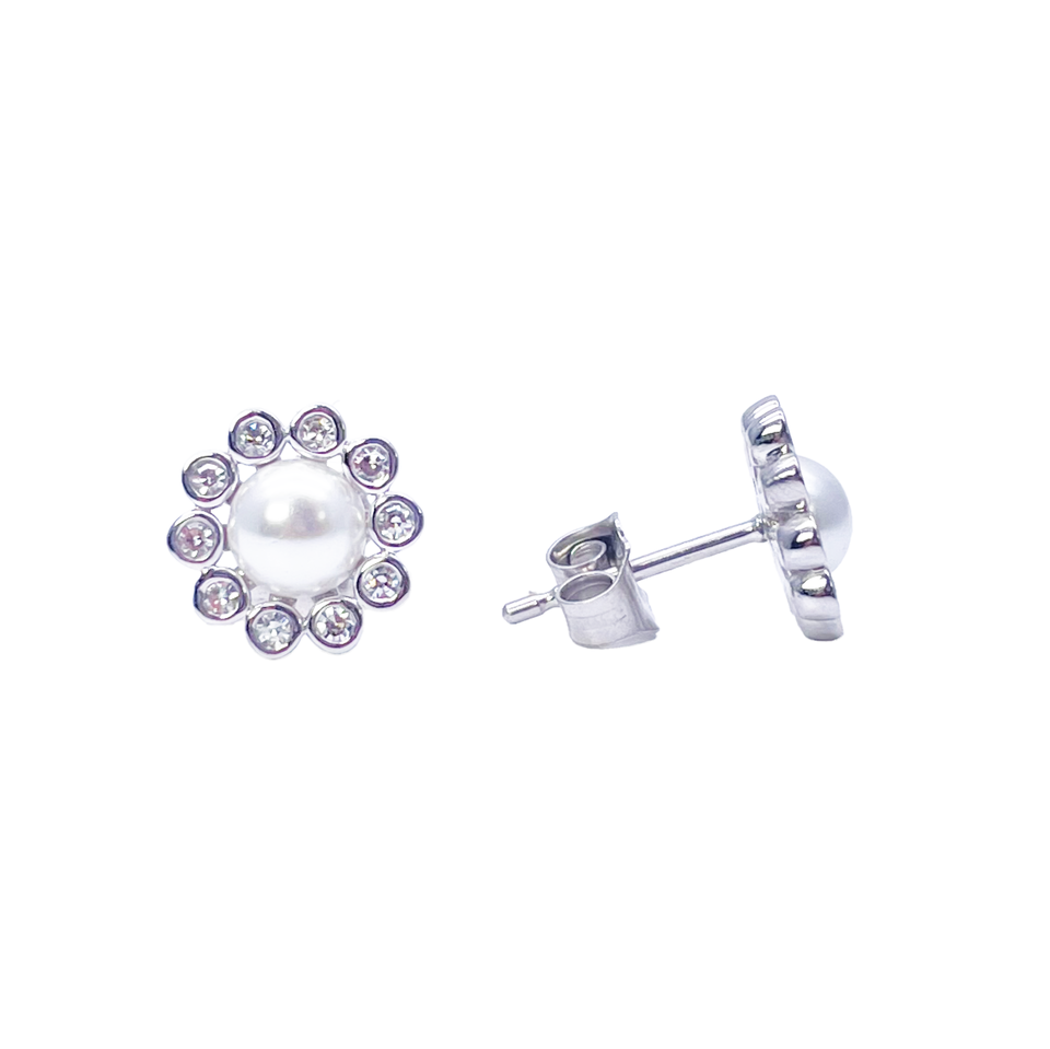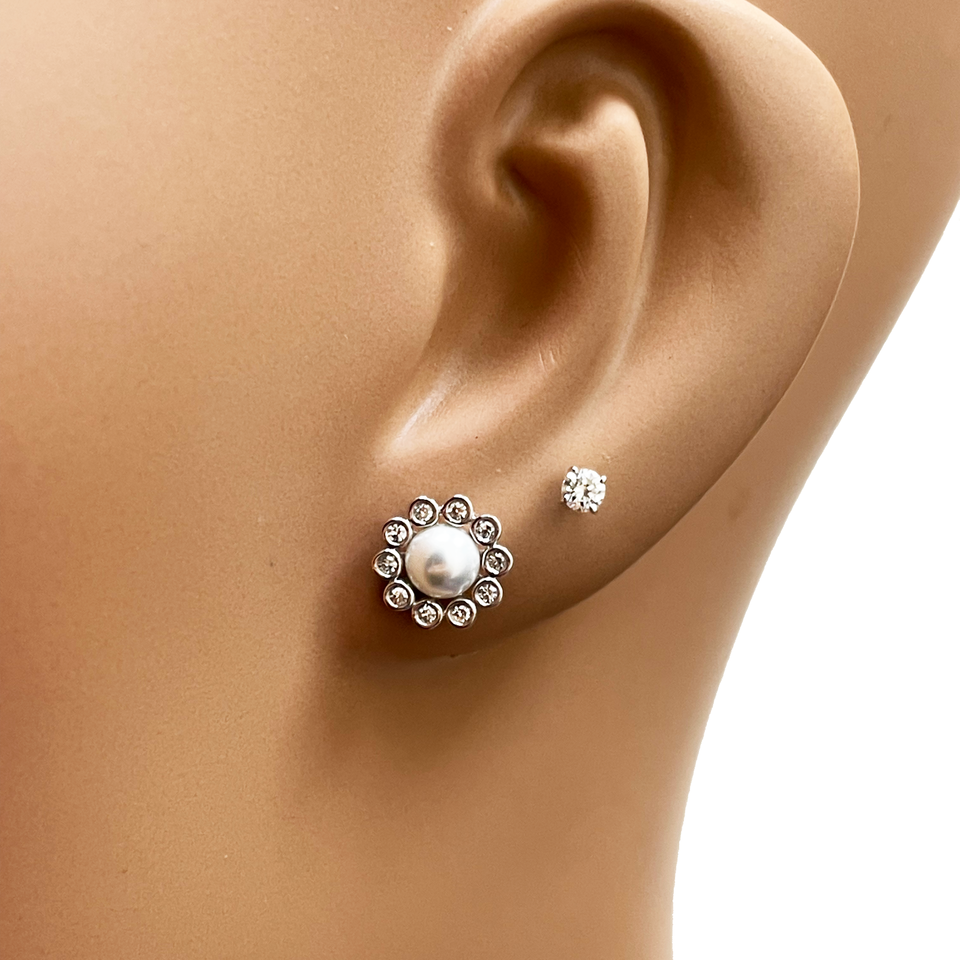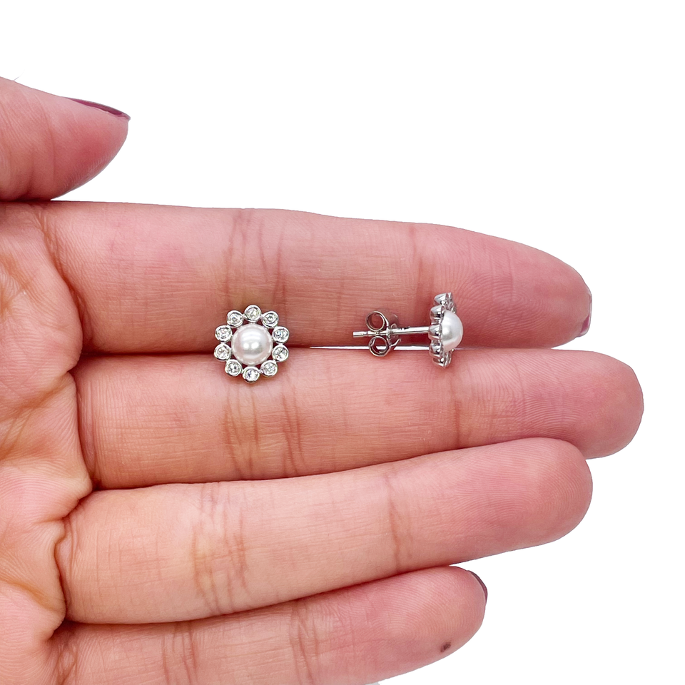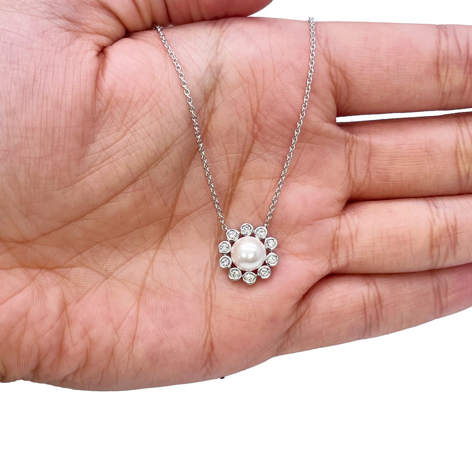 - 18ct White Gold Diamond & Pearl Floral Necklace/Earrings Set 2.73ct