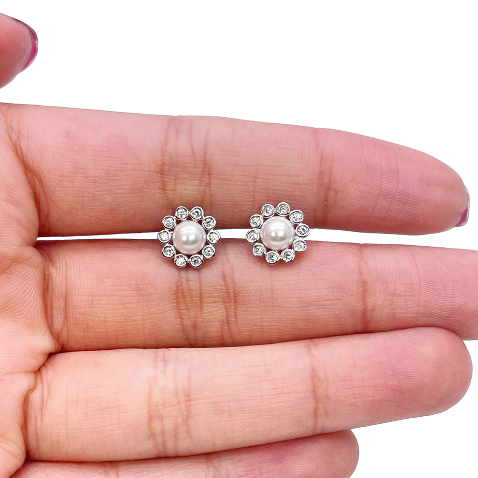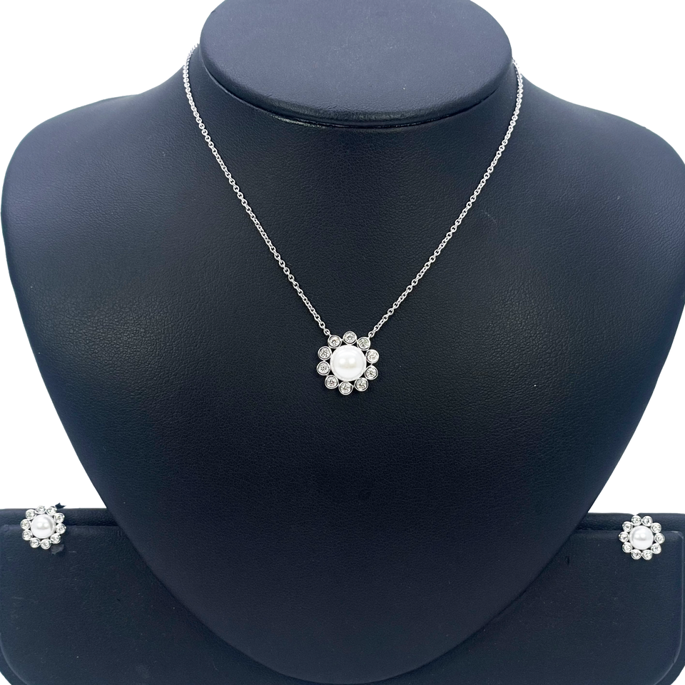 18ct White Gold Diamond & Pearl Floral Necklace/Earrings Set 2.73ct