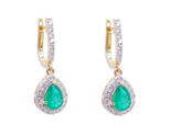 - 18ct Yellow Gold Natural Diamond & Zambian Emerald Huggie Hoop Earrings 1.48ct