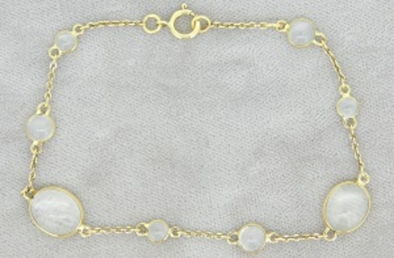 - 18k Yellow Gold 6.5ct Genuine Natural Moonstone Bracelet Jewelry (#J4560)