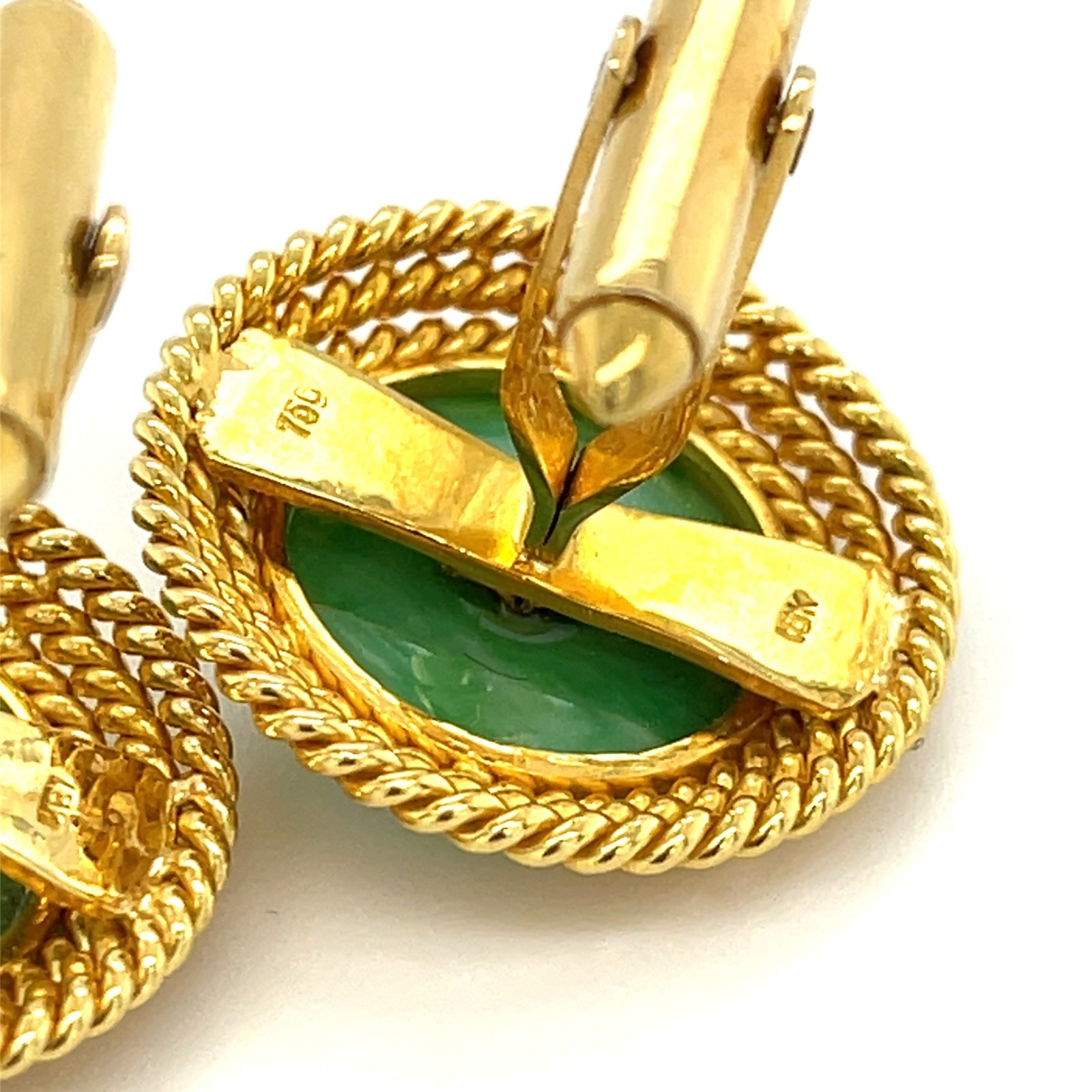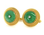 - 18k Yellow Gold Jadeite Jade Cufflinks with 0.10 ct Diamond Accents