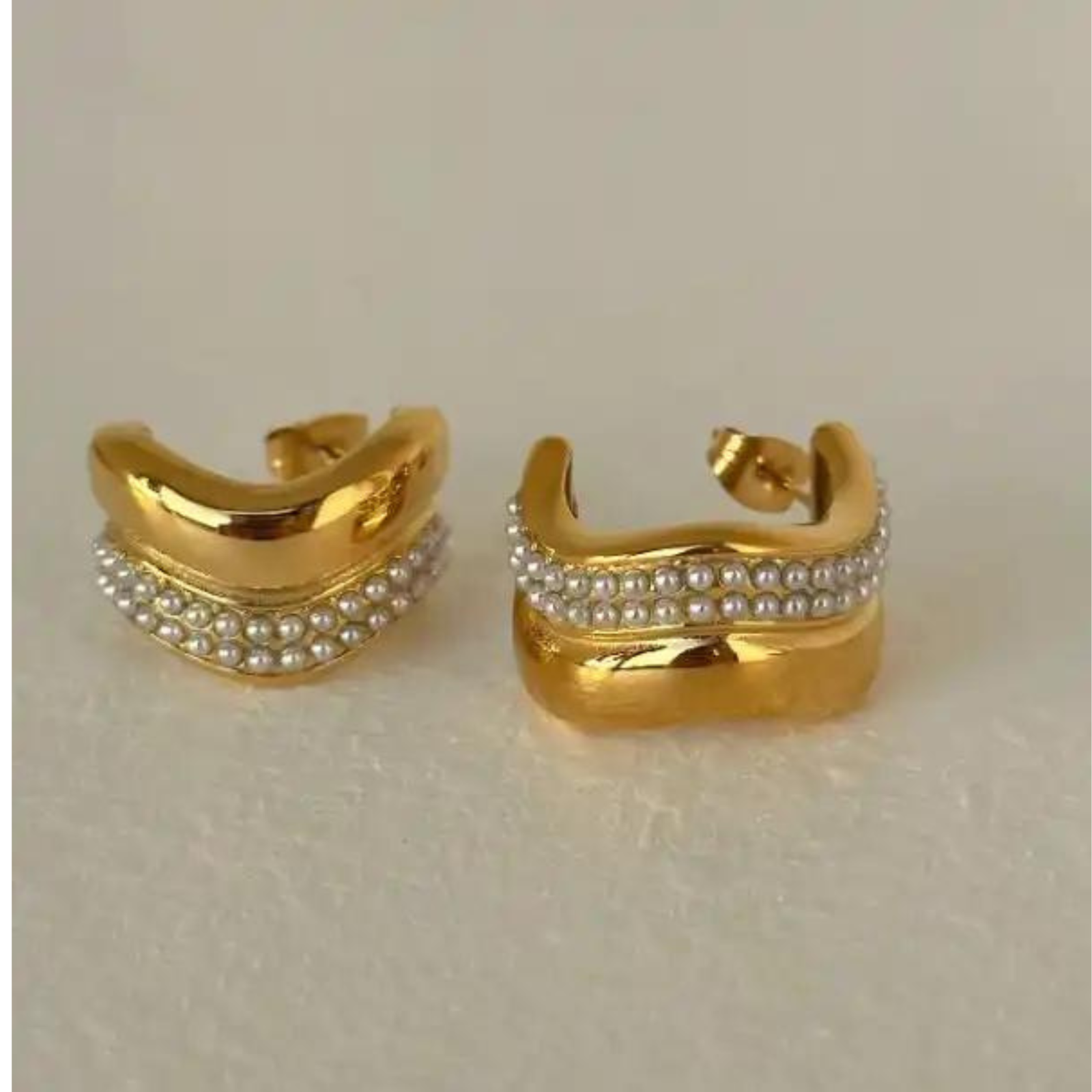 Make a statement with our Gold Vintage pearl earrings. These elegant earrings feature a delicate Snake Chain design, crafted with 18k gold stainless steel for a timeless and waterproof finish. Hypoallergenic and minimalist, they are perfect for everyday wear. Elevate your style with confidence and sophistication.