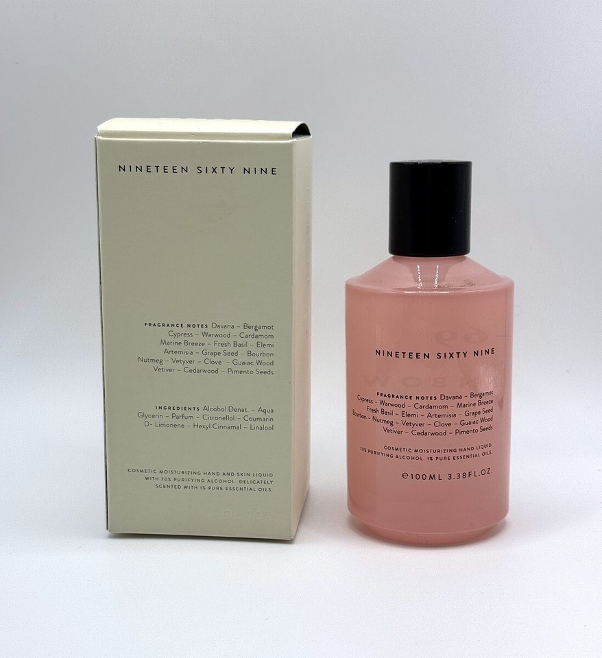 19-69: Nineteen Sixty Nine. The luxury perfume brand founded by the Swedish artist Johan Bergelin symbolizes freedom and tolerance. Carefully selected quality raw materials and a creative process developed between Scandinavia, France and Italy. Unisex fragrances that will allow the individual to explore beauty across the borders. The Liquide Parfum Pour Les Mains is a perfumed sanitizing spray for hands.
