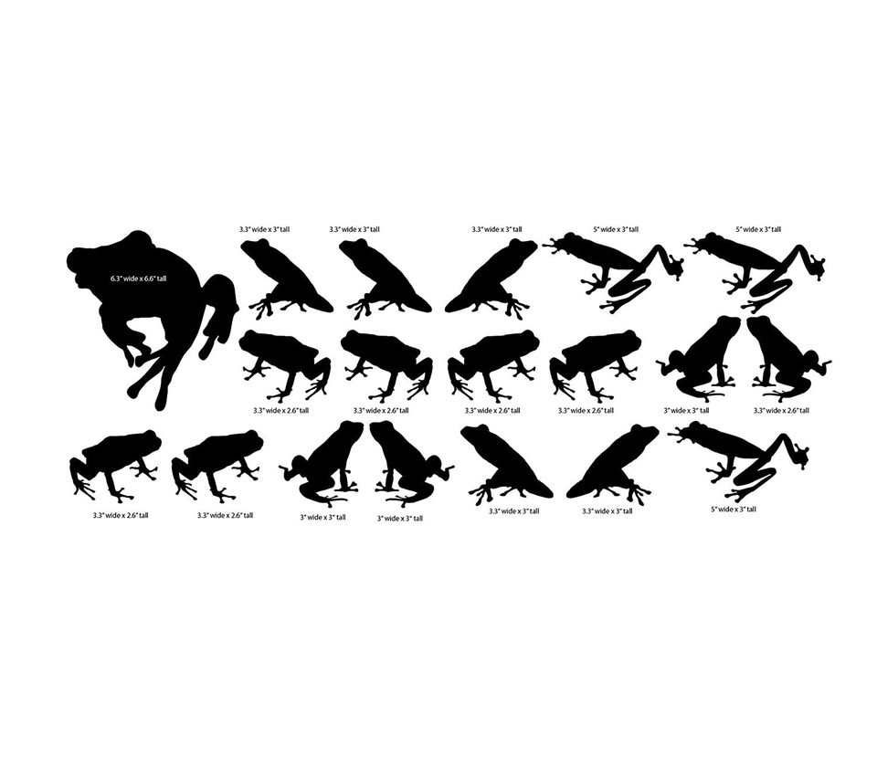 19 Assorted Rainforest Frog Vinyl Decal Sizes on Second Image - Indoor/Outdoor