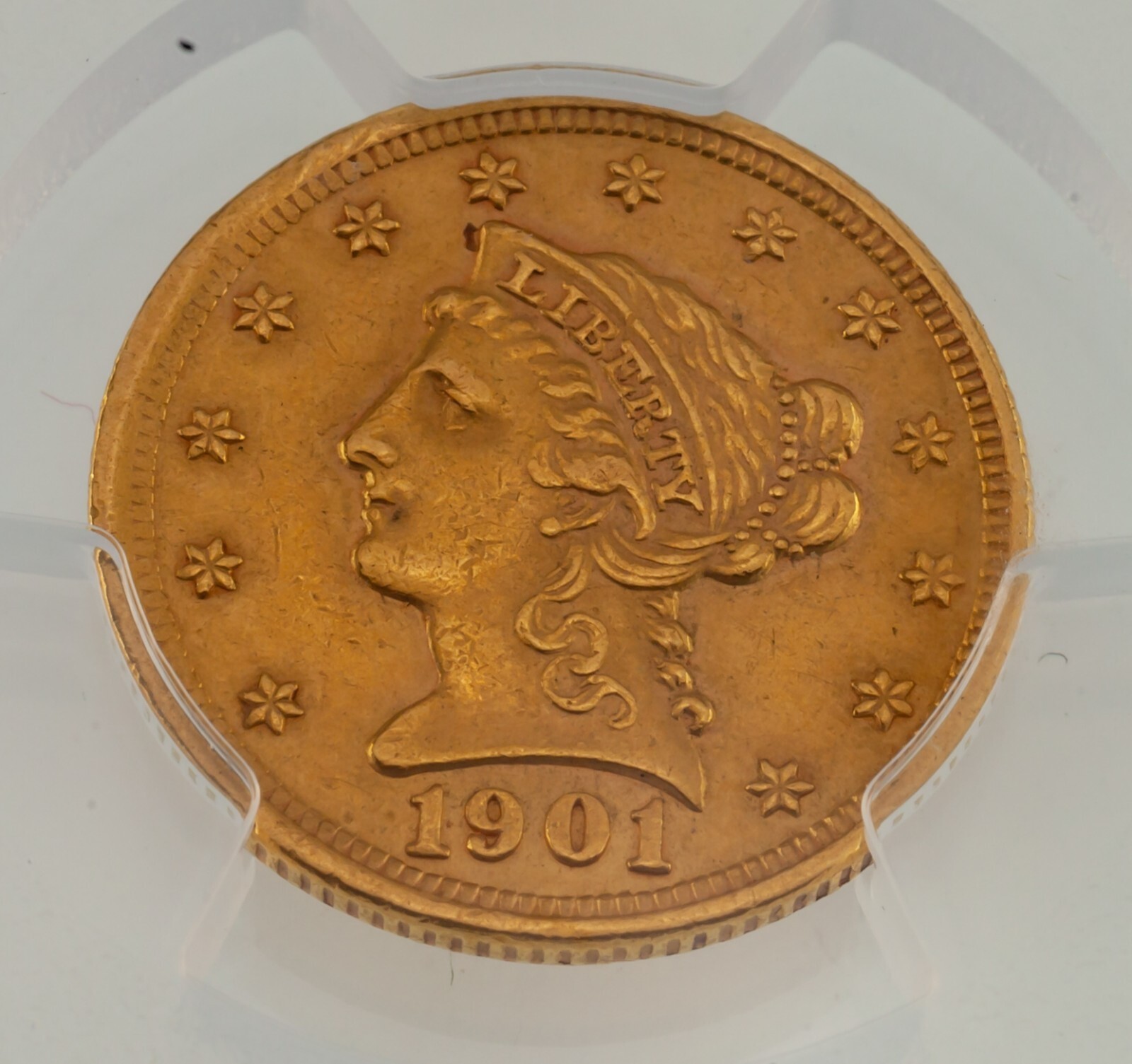 - 1901 Gold Liberty Quarter Eagle Graded by PCGS as AU Details