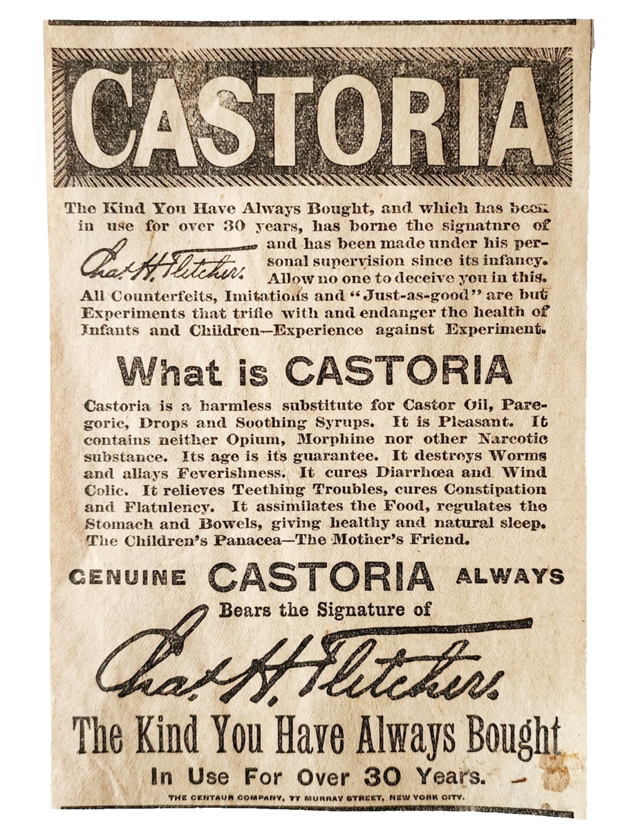 1902 Castoria Quack Medicine Advertisement Castor Oil Substitute Medicine DWKK27