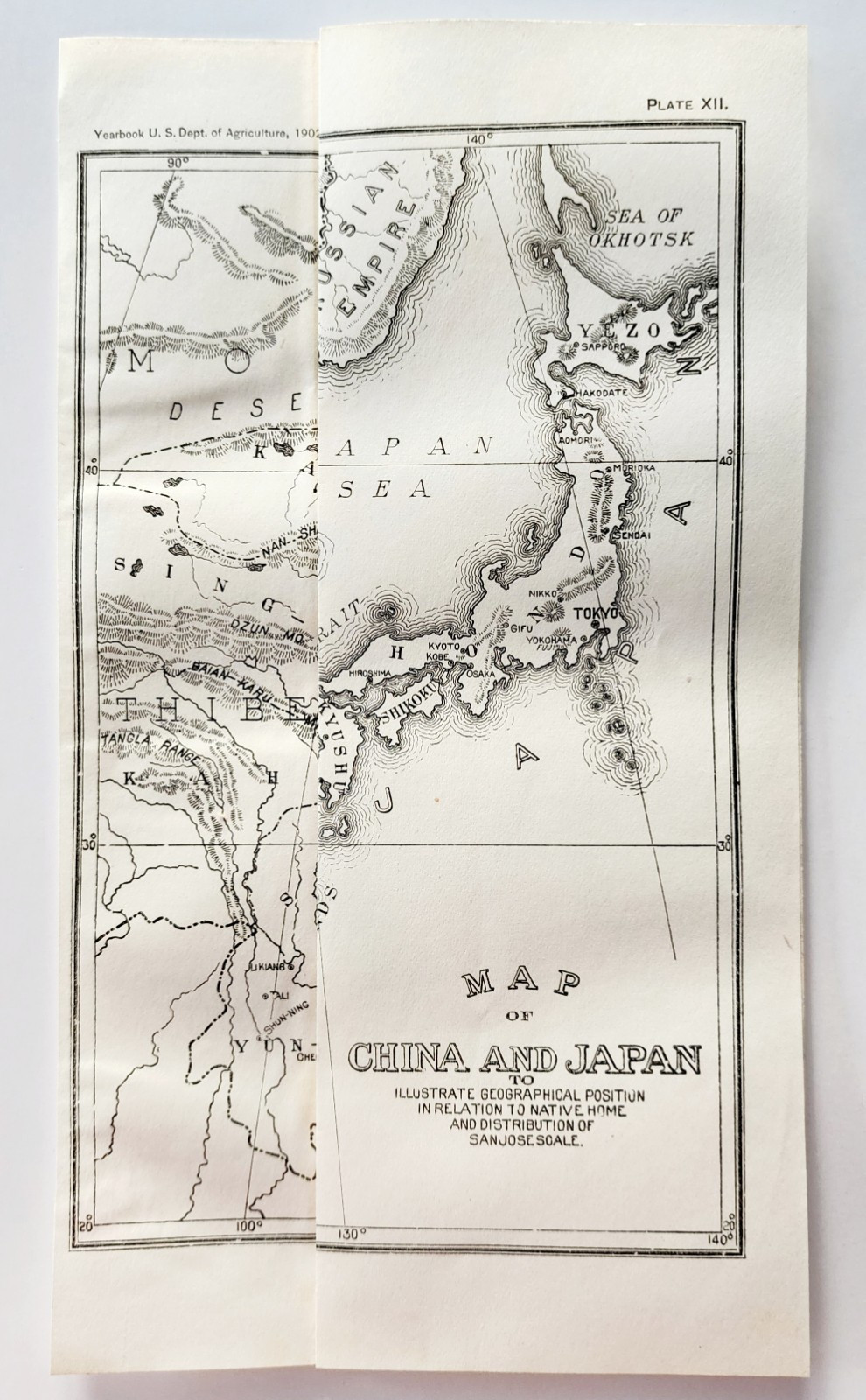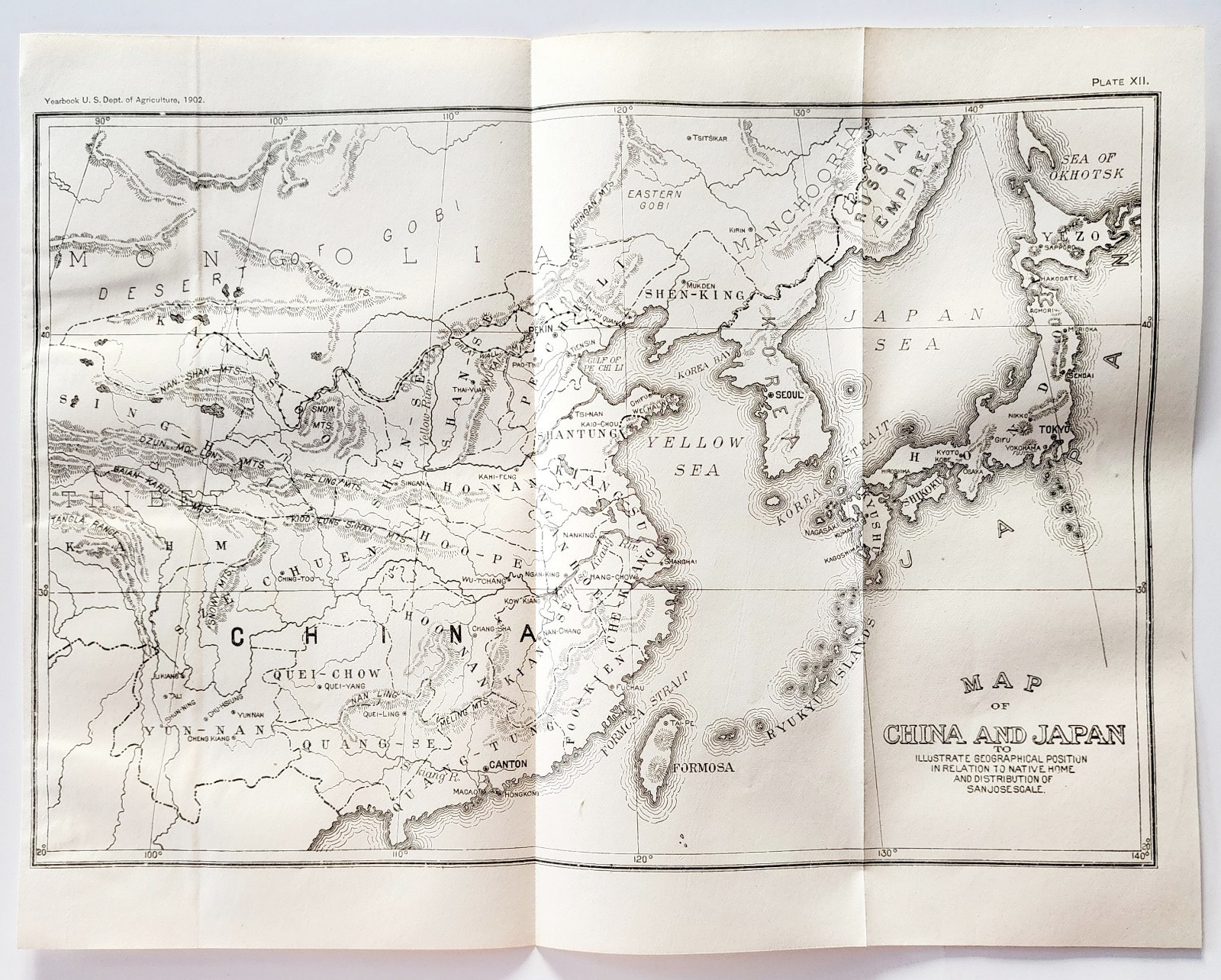 1903 Map Of China & Japan Wood Engraving San Jose Scale Geographical DWSS14