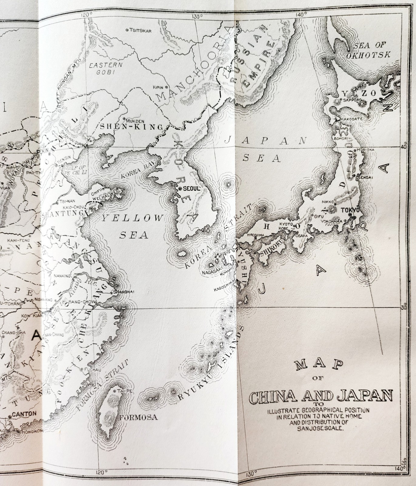 - 1903 Map Of China & Japan Wood Engraving San Jose Scale Geographical DWSS14