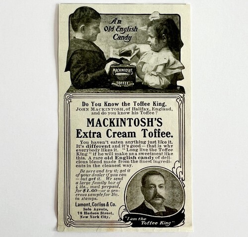 1904 Mackintosh Extra Cream Toffee Advertisement Candy Ephemera 4 x 2.25"