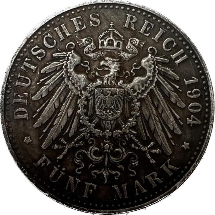 Presentamos la replica de moneda de fantasía alemana de 5 marcos Ernst Ludwig de 1904, un impresionante tributo a una epoca significativa en la historia alemana. Esta replica cuidadosamente elaborada encarna el rico legado de Alemania cuando todavía era un imperio, celebrando el reinado de uno de sus líderes mas notables, el Gran Duque Ernst Luis de Hesse. Esta moneda no solo es una representacion notable de la epoca, sino tambien una celebracion del impactante gobierno de Ernst Ludwig. El anverso de la moneda presenta un retrato bellamente grabado del Gran Duque, rodeado de inscripciones que honran su gobierno. Alemania cuenta con una de las historias mas esplendidas de produccion de monedas de plata en Europa, y esta moneda de 5 marcos de 1904 sirve como una gema preciosa que encapsula la narrativa de una nacion, su cultura y su gente. Para los coleccionistas que buscan monedas únicas y raras, esta replica de 5 marcos es una adicion esencial a cualquier coleccion. Sus detalles meticulosos y diseño excepcional reflejan la artesanía ejemplar y la búsqueda duradera de la perfeccion inherente a la produccion de monedas. No pierdas la oportunidad de poseer un pedazo de historia con esta exquisita replica de moneda de fantasía.