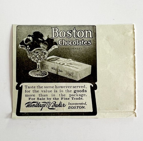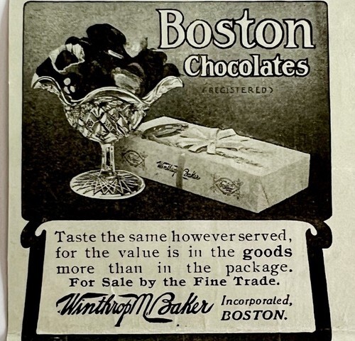 Primary image for 1906 Boston Chocolates Winthrop Baker Advertisement Candy Ephemera 3.25 x 2.5"