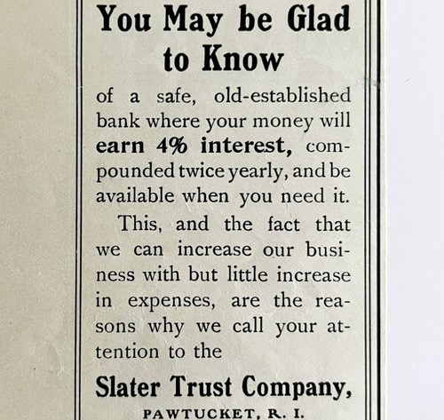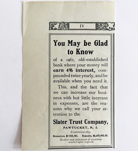1906 Slater Trust Company Advertisement Banking Ephemera 5.25 x 3.25"