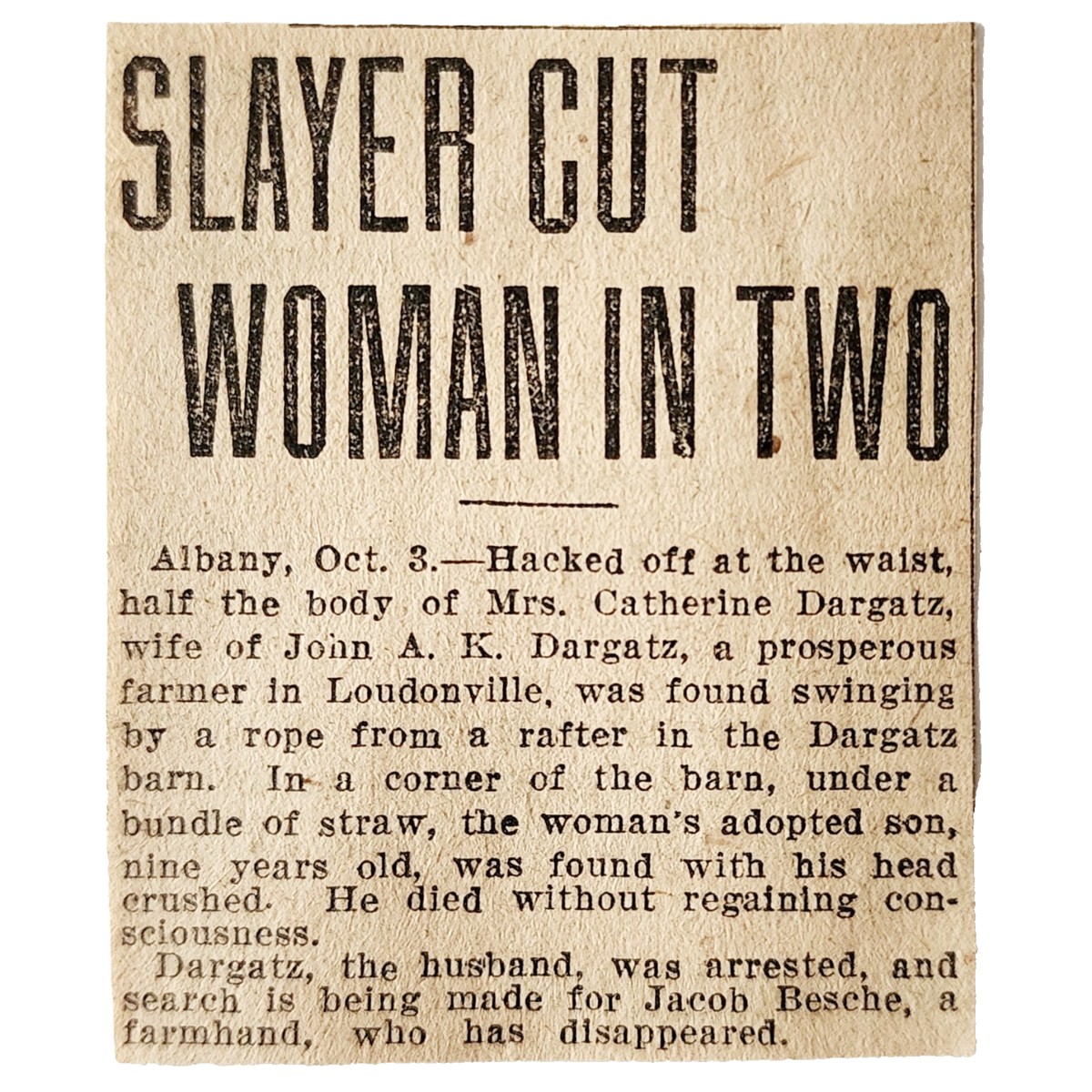 1907 Catherine Dargatz Murder Loudonville NY Barn Crime News Clipping DWKK27