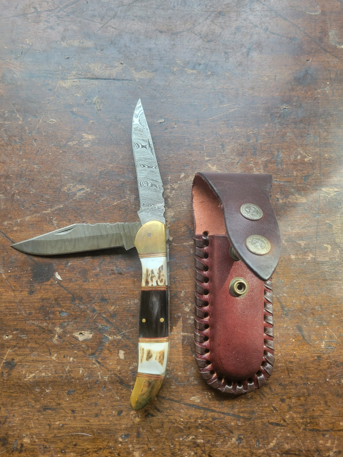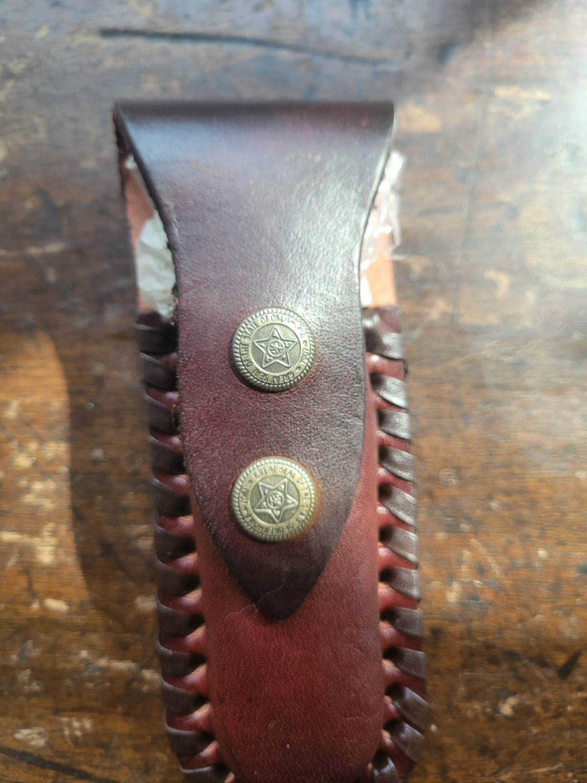 - 1907 Great Seal of the State of Oklahoma Bone/Wood Knife With Leather Sheath