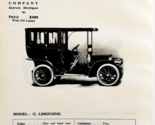 Primary image for 1908 Cadillac Model G Limousine Print Catalog Advertisement Automobilia F14F