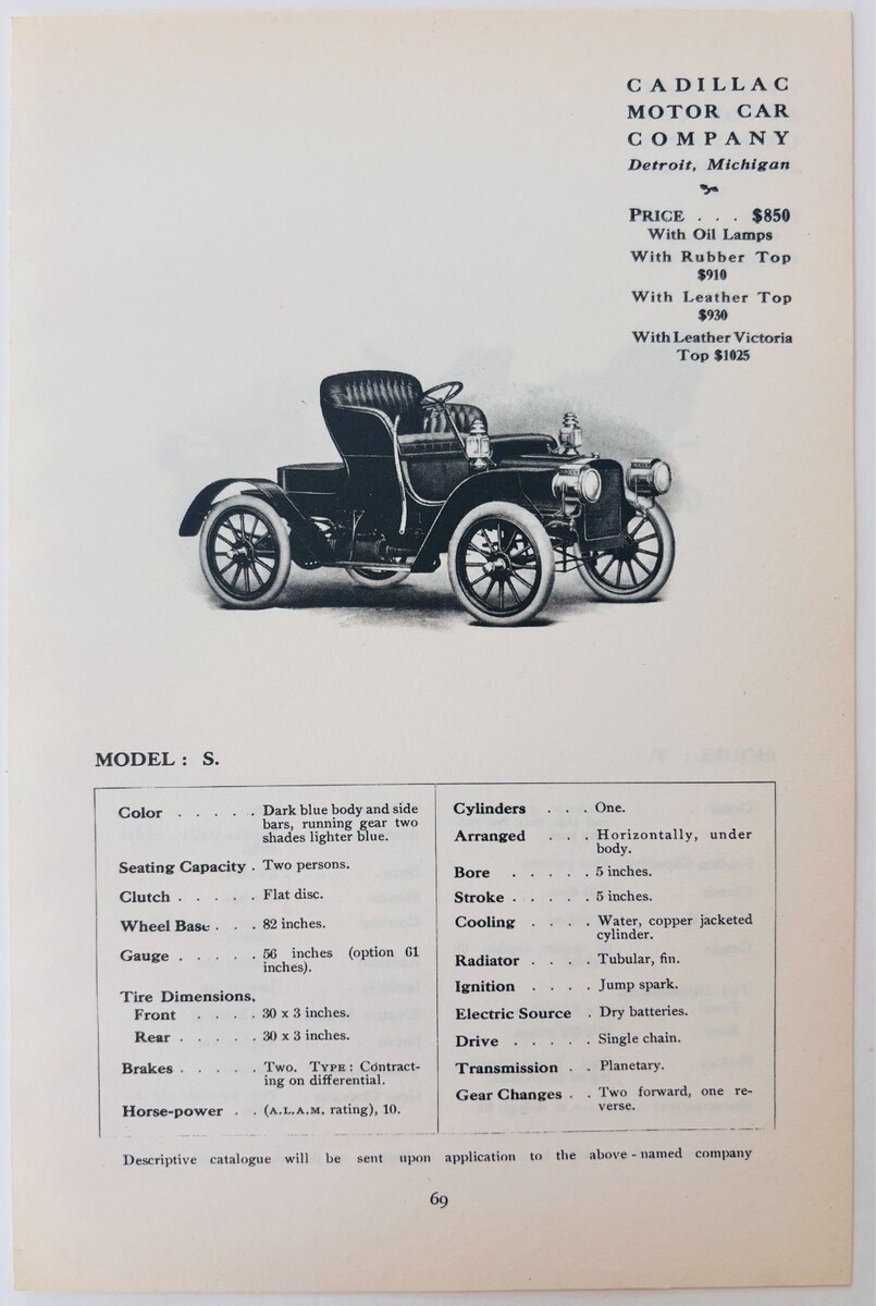 1908 Cadillac Model S Vehicle Antique Catalog Advertisement Automobilia F17M2