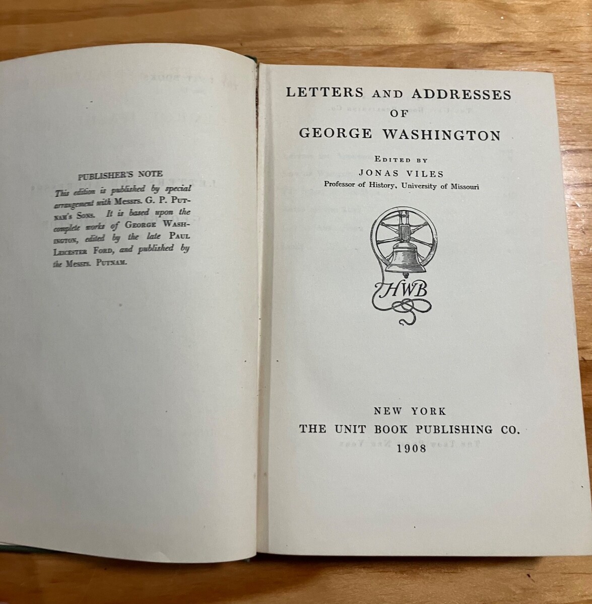 1908 LETTERS and ADDRESSES of GEORGE WASHINGTON UNIT BOOK PUBLISHING CO Gift