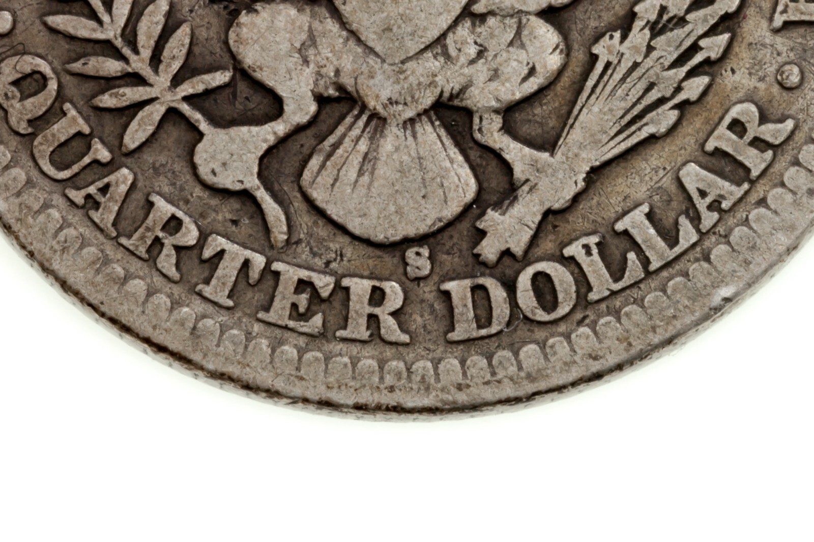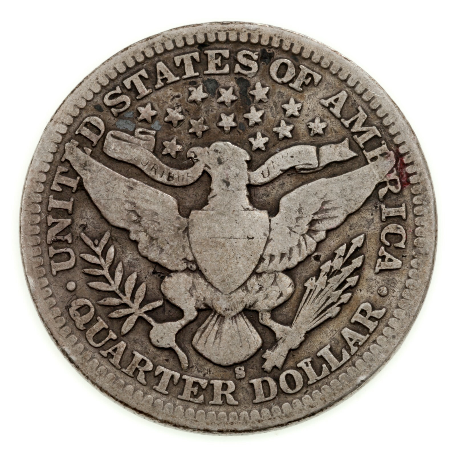 - 1908-S 25C Barber Quarter in Very Good VG Condition, Natural Color