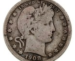 1908-S 25C Barber Quarter in Very Good VG Condition, Natural Color