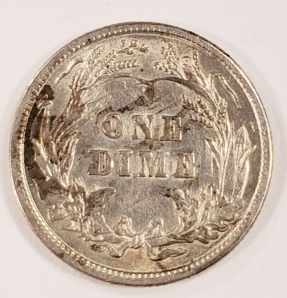- 1913 10C Barber Dime About Uncirculated AU Condition, Excellent Eye Appeal