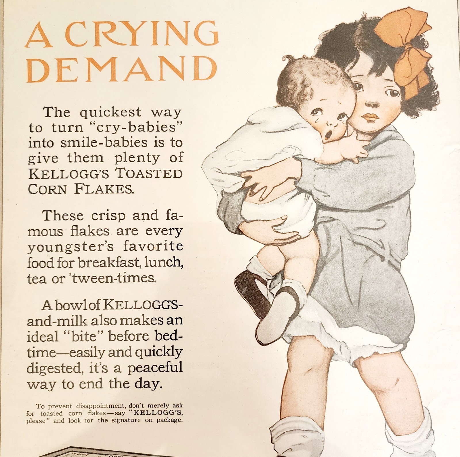 Primary image for 1914 Kellogg's Toasted Corn Flakes Cereal Advertisement A Crying Demand DWXX