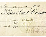 1914 Kineo Trust Company Bank Check E.A. Sampson Dover Maine Signed 6214 CHX7