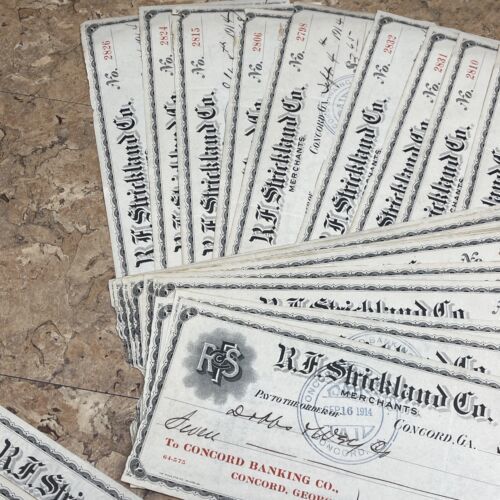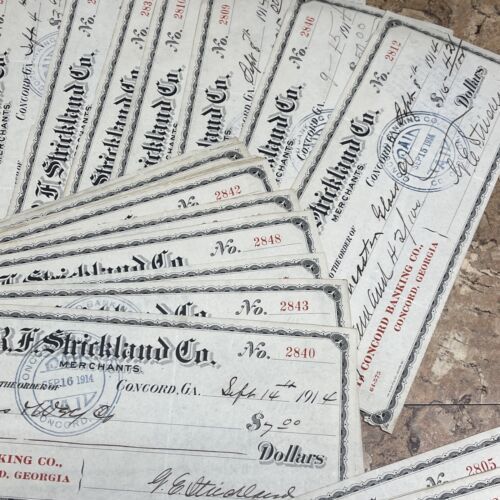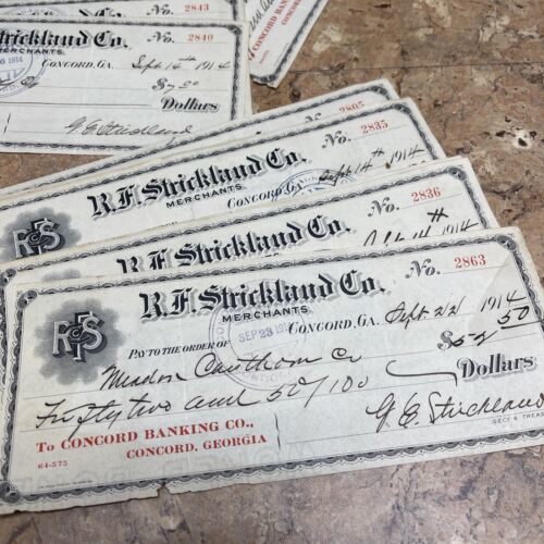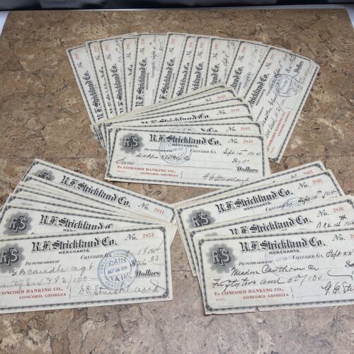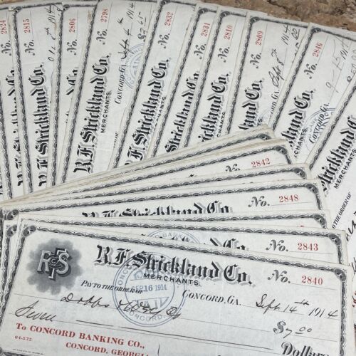 Primary image for 1914 R.F. STRICKLAND CO. MERCHANTS, BANK DRAFT, CONCORD, GA Lot Of 45 Checks JD