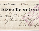 1915 Kineo Trust Company Bank Check E.A. Sampson Dover Maine Signed 7038 CHX13