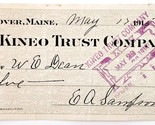 1915 Kineo Trust Company Bank Check E.A. Sampson Dover Maine Signed 7074 CHX13
