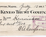 1915 Kineo Trust Company Bank Check E.A. Sampson Dover Maine Signed 7114 CHX13