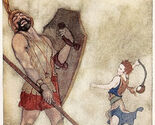 1916 David Kills Goliath Color Plate Print Willy Pogany Art Bible Story E17G